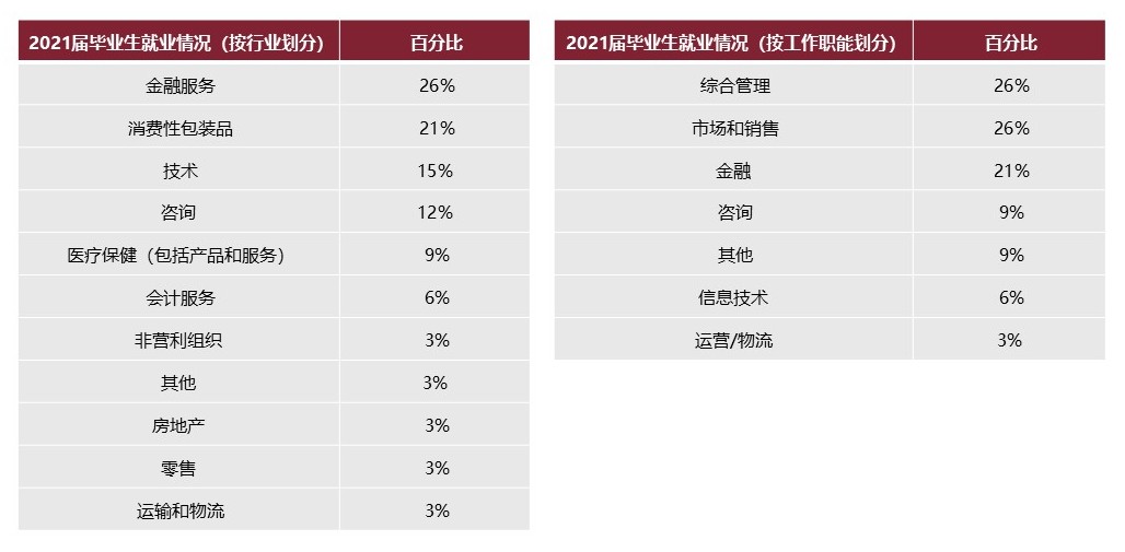 在选择直接就业的2021届毕业生中,毕业后六个月内接受正式工作机会的比例为77%(2021年全日制工商管理硕士就业数据)