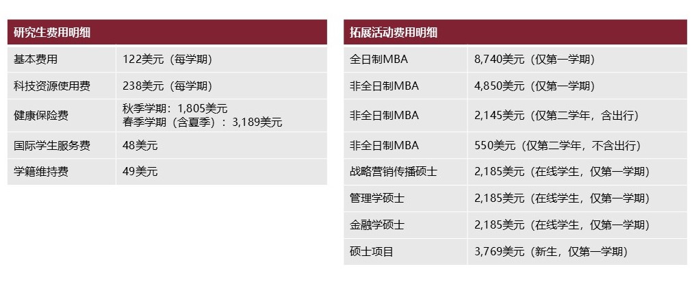 拓展活动费:拓展活动费属于一次性费用,该费用涵盖整个学术项目期间为提高学生在全球市场的应对力和竞争力而开展的各类教育与拓展活动。通过实践应用型的学习活动,学生将在领导力、全球知识与专业能力、个人讲演和人际交往等方面获得重要技能和实践机会。